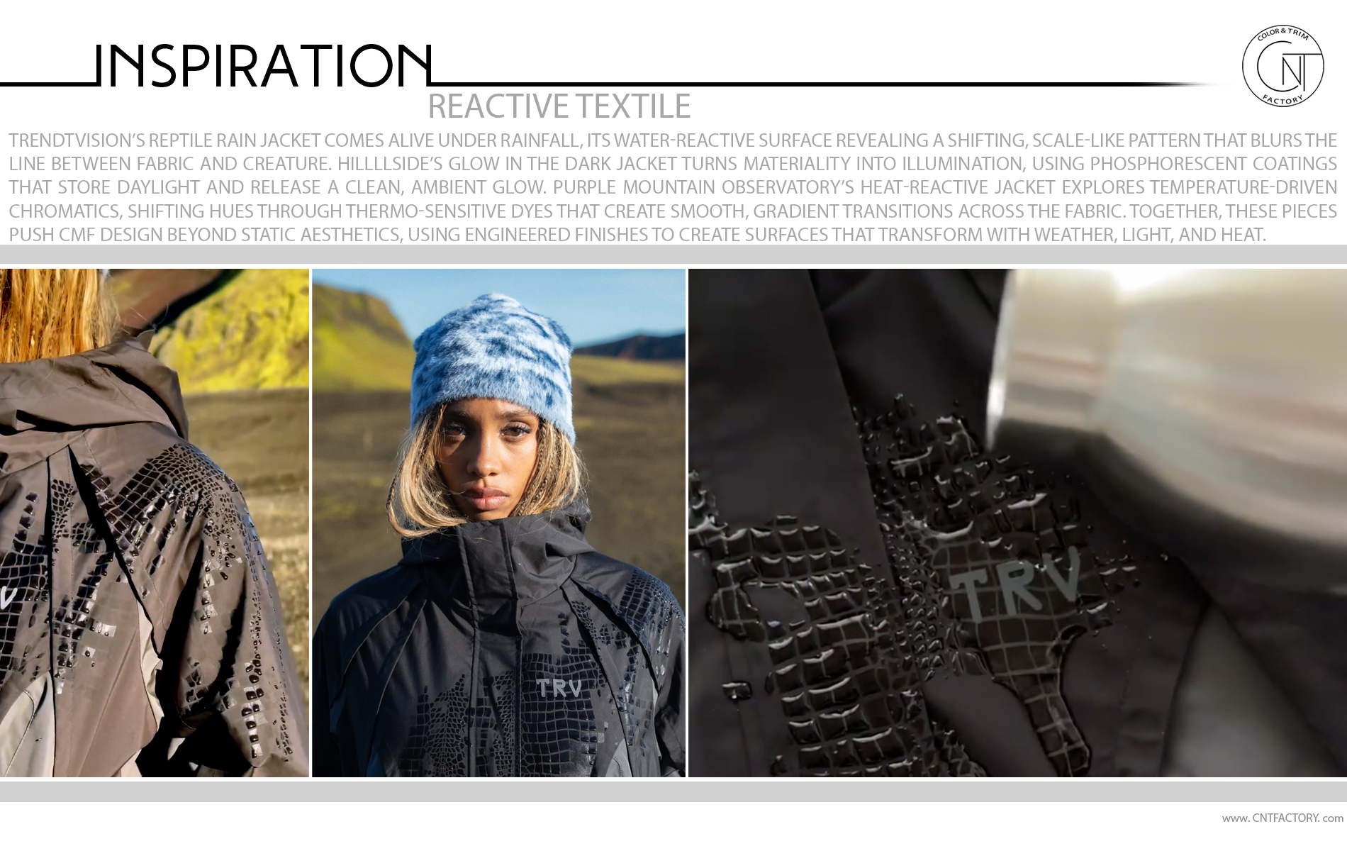 Related Posts: Rugs From Silicone Cord / Translucent Concrete / Liquid Form Non Woven Material Trendtvision’s reptile rain jacket comes alive under rainfall, its water-reactive surface revealing a shifting, scale-like pattern that blurs the line