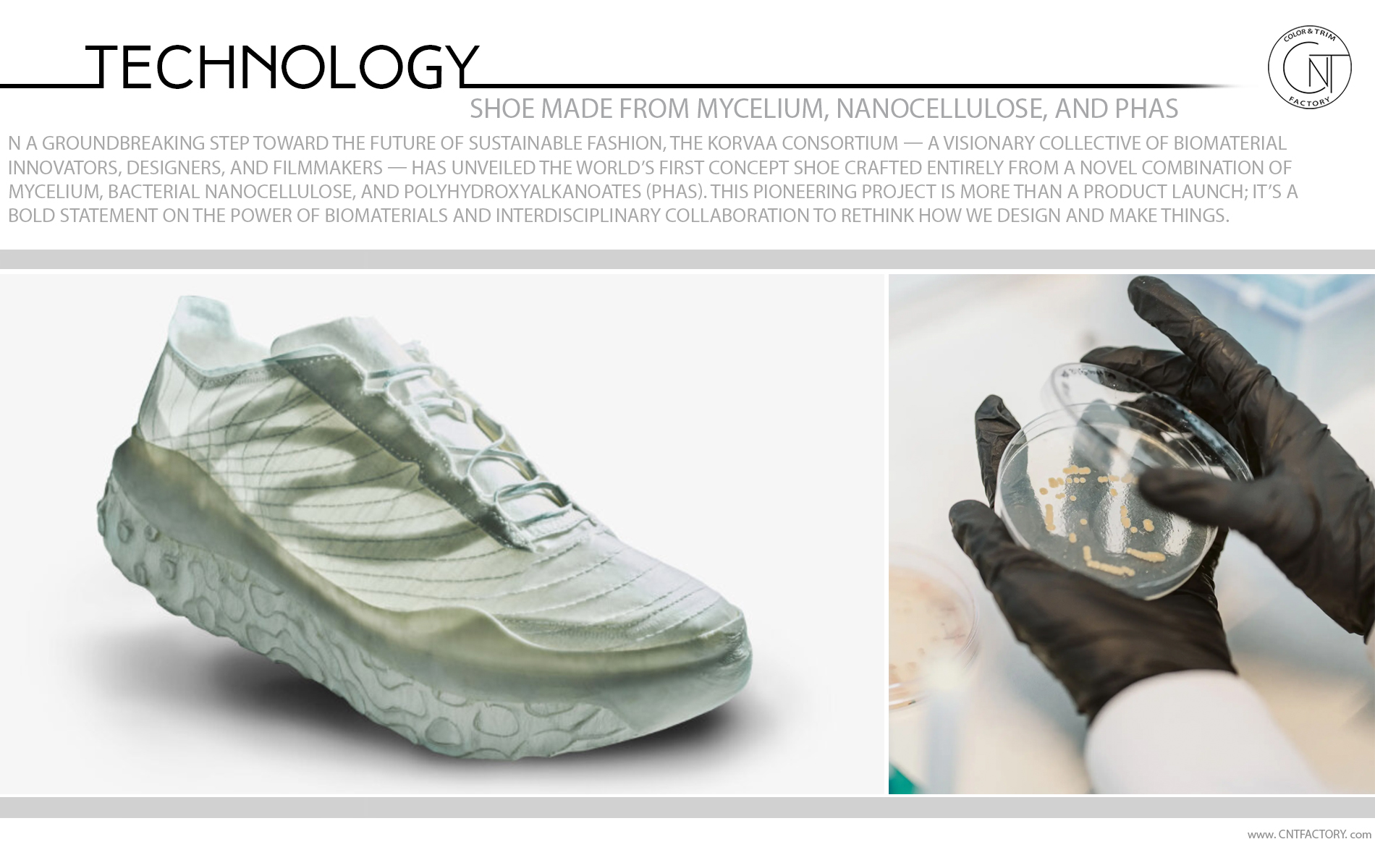 Shoe Made from Mycelium / Nanocellulose / PHAs