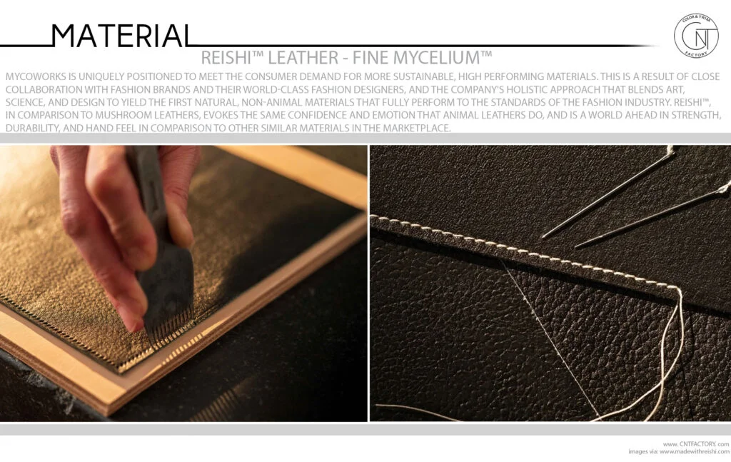 MycoWorks is uniquely positioned to meet the consumer demand for more sustainable, high performing materials. This is a result of close collaboration with fashion brands and their world-class fashion designers, and the company's holistic approach that blends art, science, and design to yield the first natural, non-animal materials that fully perform to the standards of the fashion industry. Reishi™, in comparison to mushroom leathers, evokes the same confidence and emotion that animal leathers do, and is a world ahead in strength, durability, and hand feel in comparison to other similar materials in the marketplace.