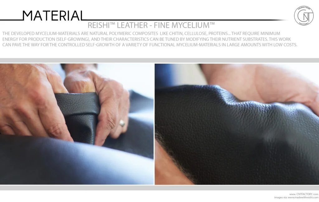 The Fine Mycelium™ breakthrough capabilities are behind Reishi™, a new class of sustainable material that performs like cowhide leather, the only non-animal, non-plastic material that can do so, offering unparalleled performance. As such, it is the first and currently only material to offer a sustainable solution for the fashion and footwear industries that does not compromise on performance, quality, or aesthetics.